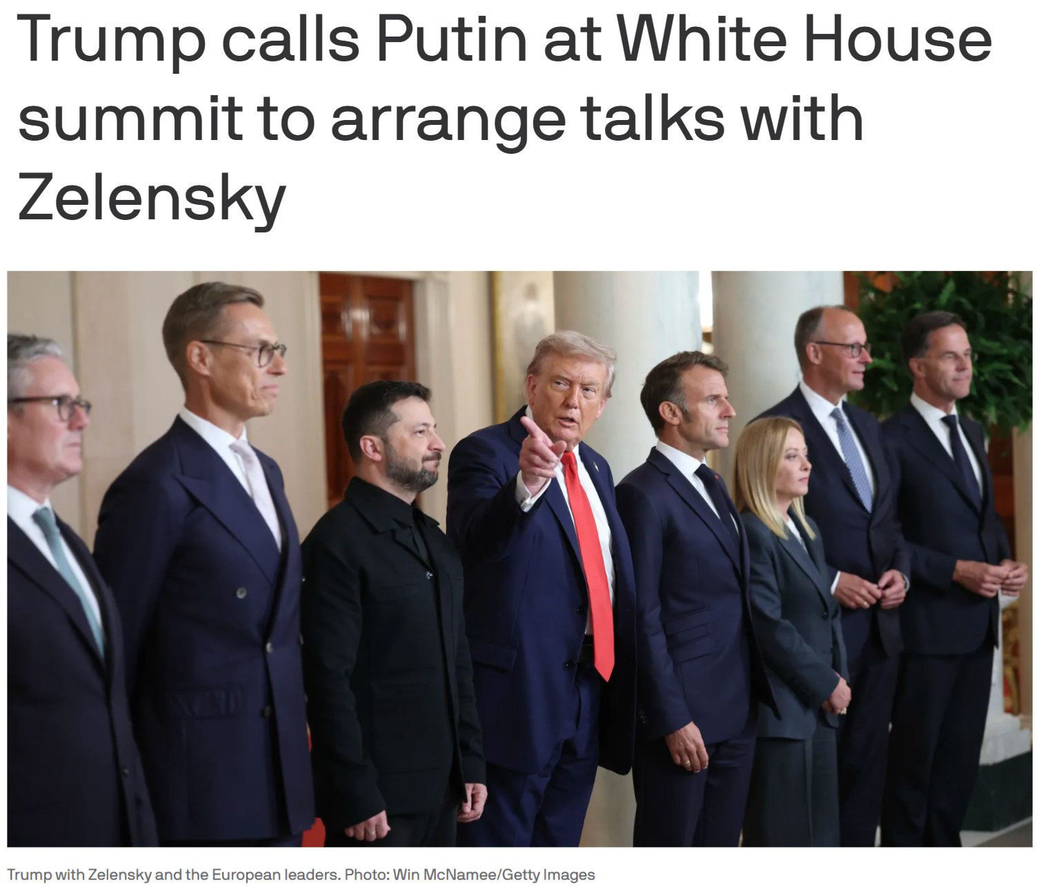 当天,和泽连斯基前后脚抵达白宫的还有北约秘书长吕特、欧盟委员会主席冯德莱恩、英国首相斯塔默、意大利总理梅洛尼、芬兰总统斯图布、德国总理默茨和法国总统马克龙。在美乌双边会晤后,特朗普、泽连斯基与上述领导人举行了多方会晤,随后举行闭门会议。