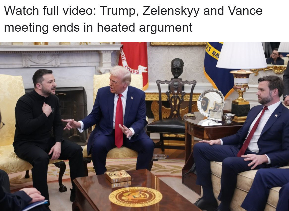 当天13时许,特朗普在白宫椭圆形办公室开始与到访的泽连斯基举行会谈,副总统万斯等美方官员出席。双方讨论了美俄乌三方会谈、对乌安全保障、对乌出售武器等议题。